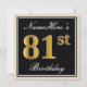 Invitación Elegante, negro, falso oro 81 cumpleaños + nombre