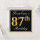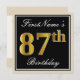 Invitación Elegante, negro, falso oro 87 cumpleaños + nombre