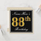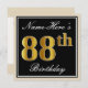 Invitación Elegante, negro, falso oro 88º cumpleaños + nombre