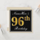 Invitación Elegante, negro, falso oro 96º cumpleaños + nombre