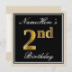 Invitación Elegante, negro, falso oro segundo cumpleaños + no