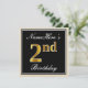 Este sencillo y elegante diseño de invitación para fiestas de cumpleaños incluye un mensaje personalizado como "NameHere's 2nd Birthday" (con el "2nd" con un aspecto falso/imitador de color dorado) dentro de un área cuadrada de color negro con un sencillo contorno de borde. El nombre se encuentra en un texto elegante de color blanco tipo script, y se puede personalizar. En la parte posterior se incluyen detalles de invitación personalizados. Una invitación para una fiesta de cumpleaños como esta podría ser usada tal vez cuando se invita a la gente a una fiesta de cumpleaños para alguien que está celebrando su segundo cumpleaños. [~Z0000224]