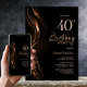 Invitación Elegante negro y Naranja 40. Fiesta de cumpleaños