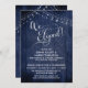 Esta invitación festiva podría ser justo la pieza que te ayude a anunciar tu fuga y a invitar a tu tribu a celebrar contigo en tu boda informal o recepción. Sobre una imagen de fondo azul marino con tablones de madera rústicos y desgastados, he utilizado una fuente de escritura elaborada y arremolinada para crear un gráfico de tipografía superpuesto que dice "¡Nos fugamos!". Dos racimos de hileras de luces se cruzan por encima, casi simulando un dosel. Utilice los campos de la plantilla para añadir tus propios detalles y haz clic para personalizar aún más si deseas hacer alguna modificación adicional. Todas las capas están desbloqueadas para permitir todo el control de posicionamiento y tamaño que desees.