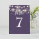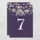 Estas elegantes tarjetas de números de mesa de doble cara con luces de cuerda violeta son perfectas para todas las celebraciones. Diseñado por Thisisnotme©