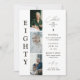 Elegante invitación de fiesta de cumpleaños número 80. El diseño presenta un collage de tiras fotográficas y una elegante plantilla de cumpleaños. Todo el texto se personaliza fácilmente.