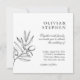 Elegante y moderno aceituna ramas negra y blanca. Simple invitación tradicional de boda con follaje dibujado a mano. Parte de una colección de bodas.