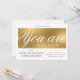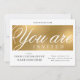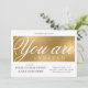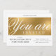 Crea un negocio profesional invitaciones para tu evento con esta moderna invitación de la compañía blanca y de oro. Puede editar todo el texto, agregar su logotipo y detalles del evento para crear elegantes invitaciones para su fiesta de lanzamiento, noche de gala, cena de recaudación de fondos o cualquier otro evento corporativo. El tipo de letra del guión de moda escribe 'estás invitado' y el fondo del efecto de oro falso le da un toque de lujo adicional a estas invitaciones de la empresa.