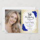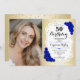 Invitación Elegante oro blanco real azul foto 50 cumpleaños