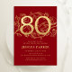 Invitación Elegante Oro Rojo 80 cumpleaños