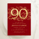 Invitación Elegante Oro Rojo 90 cumpleaños