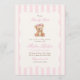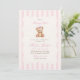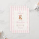 Un dulce gesto a la tradición con un toque de encanto atemporal. Esta invitación de baby shower grandmillennial presenta suaves rayas de acuarela rosa, un oso de peluche estilo vintage y tipografía elegante — perfecta para celebrar a una pequeña dama en camino.