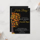 Esta elegante ducha de bebé de otoño es perfecta para una moderna ducha de bebé de otoño. El diseño es sencillo y cuenta con árboles y hojas de otoño con una tipografía elegante en blanco y amarillo sobre un fondo negro.