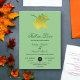 Esta elegante invitación a la boda de otoño es perfecta para un boda moderno de otoño. El diseño es sencillo, con hojas de otoño verdes y una tipografía elegante en negro y verde sobre un fondo verde sabio