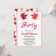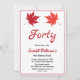 Esta elegante invitación al cumpleaños de otoño es perfecta para un cumpleaños de otoño moderno. El diseño es sencillo, con hojas de color burdeos y naranja en caída, con una tipografía elegante en negro y borgoña sobre un fondo blanco.
