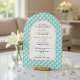 Celebre un hito especial con esta invitación para Bat Mitzvah bellamente diseñada, que presenta un diseño elegante de color azul turquesa y perlas con texto acentuado en dorado. Perfecta para un evento sofisticado y atemporal, esta invitación le permite personalizar el nombre, fecha, hora y detalles del lugar. Una forma elegante de invitar a familiares y amigos a honrar esta ocasión significativa.