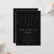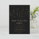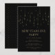 Invitación elegante para la fiesta de Nochevieja en negro y dorado. El diseño es minimalista y elegante y cuenta con luces de Navidad colgantes. Invite a amigos y familiares a una fiesta moderna de vacaciones con esta invitación de año nuevo que se puede personalizar con la inclusión de los detalles de su fiesta.