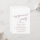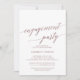 Esta elegante tarjeta de invitación de la fiesta de compromiso de caligrafía dorada subió es perfecta para un evento de otoño. El diseño rosa oscuro presenta una tarjeta minimalista decorada con una tipografía romántica y caprichosa de imitación rosa de Relieve metalizado dorado. Nota: Este diseño no tiene Relieve metalizado de oro rosa real. Es un gráfico de alta calidad hecho para parecer un Relieve metalizado de oro rosa.