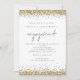 Elegante Partido de Compromiso de Guión Purpurina de Oro. Los bordes de los purpurinas falsos de oro de Glam están en la parte superior e inferior y también en la parte trasera. El compromiso se basa en un estilo moderno de escritura a mano. Personaliza fácilmente el resto del texto a tu propia persona.