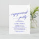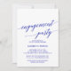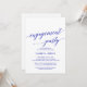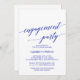 Esta elegante tarjeta de invitación de la fiesta de compromiso de caligrafía azul real es perfecta para un evento de otoño. El diseño neutro cuenta con una tarjeta minimalista decorada con una tipografía romántica y caprichosa de color azul.