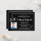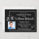 Esta elegante invitación del Partido de la Graduación incluye letras blancas contra un fondo negro y un cuarto para una foto del honor de esta ocasión especial. La parte trasera de la tarjeta tiene espacio para tres fotos adicionales. Mucho que personalizar para hacer apropiado para tu propio evento. Cualquier pregunta de diseño, sólo envíe un chat