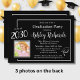 Esta elegante invitación del Partido de la Graduación incluye letras blancas contra un fondo negro y un cuarto para una foto del honor de esta ocasión especial. La parte trasera de la tarjeta tiene espacio para tres fotos adicionales. Mucho que personalizar para hacer apropiado para tu propio evento. Cualquier pregunta de diseño, sólo envíe una charla y estaremos encantados de asistirle.