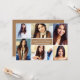 Anuncie su graduación con estilo mostrando sus fotos favoritas de los adultos mayores en el diseño de esta tarjeta de collage de fotos. Personalice la redacción de la parte trasera de la tarjeta para invitar a familiares y amigos a una fiesta de graduación para celebrar la ocasión. El color neutro de fondo café/marrón canto se puede personalizar para que coincida con los colores de la escuela o la foto.