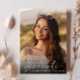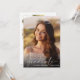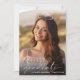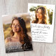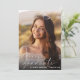 Elegante invitación a una fiesta de graduación con la foto del graduado rebosante de "graduado" en un delgado y moderno guión blanco y su nombre y año de clase en una simple tipografía blanca. En el reverso, añada una foto adicional y los detalles del fiesta de grado.