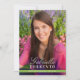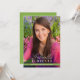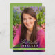 Anuncie su graduado de secundaria o universitario con estilo con esta invitación de graduación "Sleek Stripe" e invitación a la fiesta. La tarjeta de dos caras muestra dos fotos del graduado y un simple diseño superpuesto que destaca su nombre y foto. Color verde y blanco del follaje de moda.