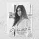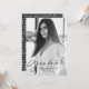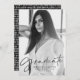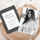 Invite a los invitados a celebrar el jardín con invitaciones modernas a la fiesta de graduación de fotos. Las elegantes invitaciones a la fiesta de graduación incluyen la foto vertical del graduado con "Graduado" en un elegante sobreescritura negra. Personalice la parte delantera de la fiesta de graduación con fotos agregando el nombre del graduado, el nombre de la escuela y el año de graduación. La parte posterior de la invitación muestra los detalles de su fiesta de graduación con un fondo de patrón blanco y negro dibujado a mano.
