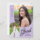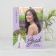 Invite a sus amigos y familiares a su fiesta de graduación con esta elegante, 2 fotos, púrpura claro y negra invitación. El diseño presenta fotos con borde arqueado y ofrece texto personalizado para los detalles de su fiesta.