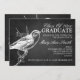 Elegante plantilla de invitación a la fiesta de graduación de pájaros de Chalkboard Negro. Impresiona a tus amigos con este diseño de invitación único. ¡personalizable total!