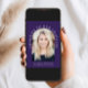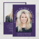 Elegante invitación a una fiesta de graduación de color morado oscuro con la foto del graduado en un marco de arco y "Felicitaciones a nuestro graduado" en tipografía serif blanca y su nombre, colegio y curso de clase en una simple tipografía blanca moderna. En la parte posterior, agregue una foto adicional y personalice los detalles del fiesta.
