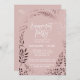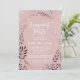 Esta elegante tarjeta de invitación para una fiesta de compromiso de color rosa y rosa es perfecta para un evento elegante. El diseño presenta un impresionante marco falso rosa de Relieve metalizado dorado sobre un fondo rosa rubor y se combina con un llamativo tipo de letra cursiva. Nota: Este diseño no tiene Relieve metalizado de oro rosa real. Es un gráfico de alta calidad hecho para que parezca oro rosa sucio.