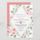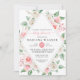 Elegante melocotón, blanco opaco, acuarela rosa invitación a la ducha de flores, con forma de rombo. nombres, fechas e información de personalizares.
