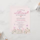 Presentamos "Una pequeña flor silvestre está floreciendo" Invitación a la bebé en Baby Shower en un fondo rosado - ¡el encantador comienzo de celebrar a tu preciosa niña! Imagínate rodeado de las maravillas de la naturaleza, adornado con deliciosas flores silvestres, mariposas y libélulas bailando alrededor, todo ello capturado con exquisitos golpes de acuarela. Cada detalle está diseñado meticulosamente para infundir calidez y alegría en su día especial. ¡Pero el encanto no termina ahí! Tienes el poder de personalizar el texto, dándole forma a un reflejo sincero de tu viaje único y compartiendo la emoción de dar la bienvenida a tu flor silvestre con todos los que más te gustan. ¡Unámonos para crear una ducha de bebé que refleje la dulzura y alegría de la llegada de tu bebé! 🌸 🌿 💖