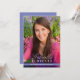Anuncie su graduado de secundaria o universitario con estilo con esta invitación de graduación "Sleek Stripe" e invitación a la fiesta. La tarjeta de dos caras muestra dos fotos del graduado y un simple diseño superpuesto que destaca su nombre y foto. Color morado perwinkle / azul y blanco.