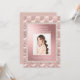 Haga inolvidable la Quinceañera de su hija con esta impresionante invitación que capta la esencia de este hito especial. Elegante "Pink Satin Princess" con un diseño de satén rosa tufado adornado con perlas blancas y brillantes joyas de oro rosa. Añada la foto de su hija al frente y la información del fiesta al dorso. Es un aguijón que se apreciará en los próximos años y una hermosa manera de invitar a sus seres queridos a compartir en la celebración del viaje de una joven mujer a la edad adulta.