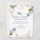 Invitaciones modernas y elegantes de cumpleaños número 85 con un acento floral rosa y azul. Las invitaciones pueden ser totalmente personalizadas para reflejar cualquier edad u ocasión y honor. Son parte de una colección más grande que incluye servilletas, placas de papel, globos, pegatinas y mucho más, todo ello diseñado para mezclarse armoniosamente con el tema de las invitaciones. Esta colección cohesiva de suministros de fiesta asegura que su celebración esté bellamente coordinada