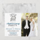 Celebre su aniversario de bodas de plata con esta invitación de fiesta de aniversario de bodas de 25 años Cheers con texto personalizable en plata y azul. Este diseño incluye una foto para que agregue su toque especial. La parte trasera presenta una hermosa textura de mármol.
