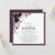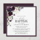 Invitación Elegante Pluma Morado Acuarela Floral Baptismo Beb