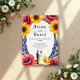 Esta elegante invitación a una boda floral acuática es perfecta para un boda moderno. El diseño romántico presenta un marco floral de color agua elegante con un ilustracion de novia y novio y una caligrafía negra con un fondo blanco.