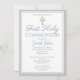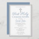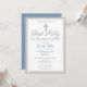 Celebremos este hito especial con una bella invitación moderna a la Primera Comunión. Este diseño presenta una sencilla cruz plateada sobre un fondo blanco con un polvoriento borde azul. Diseñar la invitación del niño perfecto para la Primera Comunión personalizando el color, la fuente, la fecha y todos los detalles del texto.