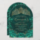 Invitación Elegante princesa verde esmeralda corona quinceane