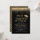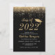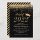 Invitación Elegante Purpurina Black Gold Gorra Graduación Par