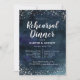 Elegante carta de plantilla de invitación a la cena para ensayo de boda con purpurinas plateados y color azul marino oscuro. El diseño se parece a un cielo nocturno con estrellas de plata. Esta carta inspirada en la galaxia ya tiene textos que tienen toda la información necesaria para su evento. Los textos son fácilmente personalizables en línea.