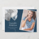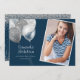 Elegante y divertida ducha de dormitorio universitario/invitación de fiesta en azul marino con purpurina plateado y globos. Personalice agregando su información de fotos y fiestas.