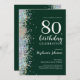 Elegante Purpurina Esmeralda Verde Invitación de cumpleaños número 80. Para una invitación de cumpleaños con un toque de elegancia, este diseño muestra un estilo moderno y sofisticado con la cantidad justa de brillo. La invitación tiene un fondo adornado con elegantes acentos purpurinas que captan la luz de forma bonita. La tipografía moderna resalta el nombre del celebrante y los detalles del evento, creando un equilibrio armonioso entre el diseño contemporáneo y la elegancia atemporal. Esta invitación desprende un ambiente glamuroso y refinado, perfecto para celebrar un hito especial con gracia y estilo.