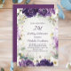 Invitación Elegante Purpurina morado blanco floral 21 cumplea
