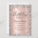 Invitación Elegante Purpurina Plata Rosa Oro 10 cumpleaños